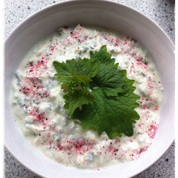 - mit einer Triebspitze Knoblauchrauke und Rote Rüben Salz dekorieren